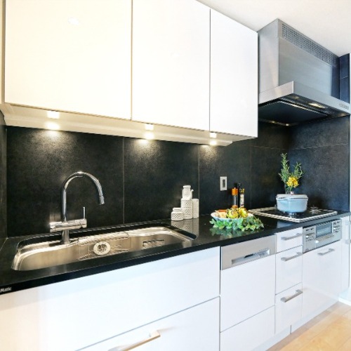 ▲使用大理石廚房設計,收納櫥櫃空間充足。